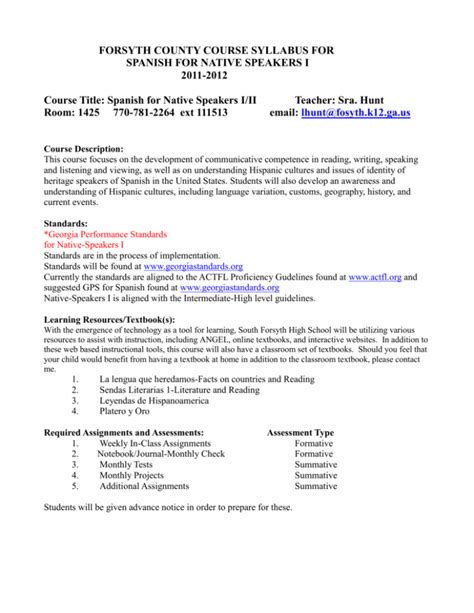SHR - Read Online FORSYTH COUNTY COURSE SYLLABUS FOR SPANISH FOR NATIVE ... Library Binding Open Library